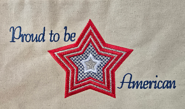 Embroidered Tote Bag: Proud to be American